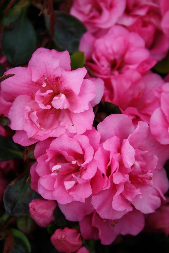 Mała ogrodowa słodycz, która potrafi skraść serce jednym spojrzeniem! Po 10 latach dorasta do 50 cm wysokości i szerokości, tworząc idealnie zwarty, kulisty pokrój – wygląda jak miękka, kwitnąca poduszka. Liście drobne, ciemnozielone i błyszczące, półzimozielone, długo zdobią krzew, a jesienią delikatnie rumienią się na czerwono-brązowo. W maju 'Babuschka' pokazuje swój największy urok – pełne, duże kwiaty w karminowo-różowym odcieniu z ciemniejszym rysunkiem w środku pojawiają się tak licznie, że niemal całkowicie otulają roślinę. Widok jest bajkowy i absolutnie rozczulający. Najpiękniej rośnie w słońcu lub półcieniu w kwaśnej, wilgotnej, próchnicznej glebie o pH 3,5-4,5, może to być ziemia do roślin kwaśnolubnych - najlepiej dodatkowo wymieszać ją z perlitem lub keramzytem, co spowoduje lepsze dotlenienie korzeni, a tym samym bujniejszy wzrost. Dobrze znosi mrozy, choć w chłodniejszych rejonach doceni zaciszne stanowisko i lekkie okrycie. Doskonale sprawdzi się w ogrodach przydomowych, japońskich, na wrzosowiskach, a także w donicach na tarasach i balkonach, gdzie wygląda po prostu uroczo. Rośliny uprawiane w donicach sadzimy w ogrodach przez cały sezon wegetacyjny, tj. od wczesnej wiosny, poprzez lato, aż do późnej jesieni.