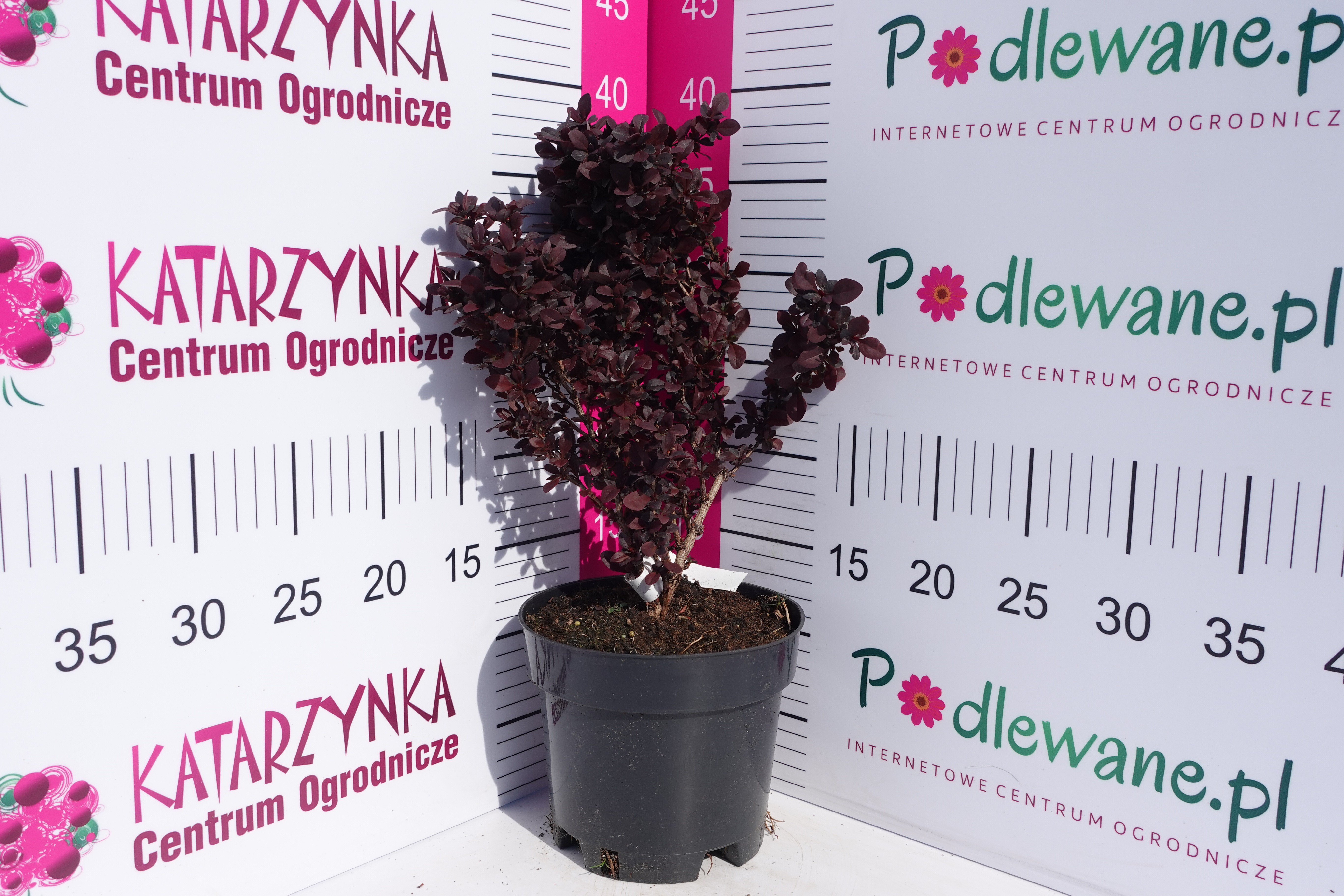 Mały krzew, wielka magia w ogrodzie! Rośnie powoli i osiąga 60 cm wysokości i podobną szerokość, tworząc gęstą, kompaktową poduchę, która od razu przyciąga spojrzenia. Pędy cierniste, łukowato wygięte, gęsto ulistnione, sprawiają, że krzew wygląda pełnie i zdrowo przez cały sezon. Prawdziwa magia zaczyna się wiosną – młode liście przybierają intensywny, ciemnoczerwony odcień, a z czasem przechodzą w głęboką, szlachetną purpurę. To słodka gra kolorów, która dodaje energii i tworzy wyjątkowo dekoracyjny efekt. W maju krzew rozświetlają drobne, żółte kwiaty zebrane w małe grona. Są subtelne, ale pełne uroku, kusząc zapachem pszczoły i motyle. Od sierpnia do września pojawiają się dekoracyjne, czerwone owoce, które pozostają na gałęziach nawet zimą i dodają ogrodowi koloru wtedy, gdy inne rośliny odpoczywają. Uwielbia słońce, gdzie najpiękniej wybarwia liście. Najlepiej rośnie w żyznej, przepuszczalnej glebie o lekko kwaśnym odczynie - może to być ziemia uniwersalna ogrodowa o pH 5,5-6,5; dodatkowo warto wymieszać ją z perlitem, co spowoduje lepsze dotlenienie korzeni, a tym samym bujniejszy wzrost. Świetnie znosi cięcie. Roślina jest wytrzymała i odporna, idealna zarówno dla początkujących, jak i wymagających ogrodników. Ten miniaturowy berberys sprawdzi się na rabatach, kompozycjach kolorystycznych, nasadzeniach miejskich, również jako niski żywopłot. Rośliny uprawiane w donicach sadzimy w ogrodach przez cały sezon wegetacyjny, tj. od wczesnej wiosny, poprzez lato, aż do późnej jesieni.