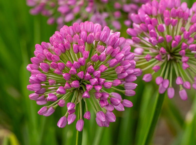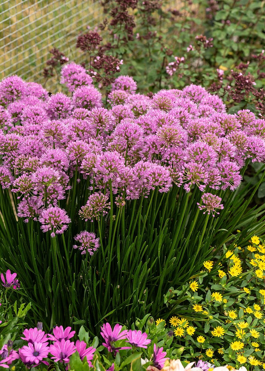 Niska, atrakcyjna odmiana czosnku ozdobnego, która zachwyca widowiskowym, obfitym kwitnieniem. Dorasta do 30 cm wysokości i podobnej szerokości. Liście żywo zielone, długie, błyszczące, "trawiaste". Latem na szczycie pędów pojawiają się gęste, kuliste baldachy. Kwiatostany zachwycają nie tylko swoim rozmiarem, ale także kontrastowym, różowo-fioletowo ubarwieniem. Kształtem przypominają dmuchawce, czarują swoją nietuzinkową, delikatną budową oraz piękną kolorystyką, a dodatkowo są chętnie odwiedzane przez pszczoły, motyle i inne owady zapylające. Po przekwitnięciu liście i kwiaty obumierają i roślina przechodzi w stan spoczynku, aby zakwitnąć ponownie w następnym roku. Czosnek ozdobny może pozostawać na jednym miejscu przez dłuższy okres czasu, ale korzystne jest wykopywanie cebul i sadzenie w inne, żyzne miejsce. Zabieg ten przeprowadzamy po kwitnieniu. W trakcie suszy oraz intensywnego wzrostu, czosnki ozdobne powinno się obficie podlewać, ale trzeba uważać, aby nie przelać rośliny, ponieważ jest wrażliwa na nadmiar wilgoci w podłożu. Warto także zasilać nawozami wieloskładnikowymi lub kompostem. Preferuje stanowiska słoneczne. Najlepiej rośnie na glebach lekkich, żyznych, przepuszczalnych o odczynie lekko kwaśnym, może to być uniwersalna ziemia ogrodowa o pH 5,5-6,5; najlepiej dodatkowo wymieszać ją z perlitem, co spowoduje lepsze dotlenienie korzeni, a tym samym bujniejszy wzrost. Świetnie nadaje się na słoneczne rabaty oraz do kompozycji np. z trawami ozdobnymi. Niesamowicie prezentuje się posadzony w grupach. Okazałe kwiatostany nadają się na kwiat cięty, a zasuszone stanowią piękny element dekoracyjny suchych bukietów. Rośliny uprawiane w donicach sadzimy w ogrodach przez cały sezon wegetacyjny, tj. od wczesnej wiosny, poprzez lato, aż do późnej jesieni.