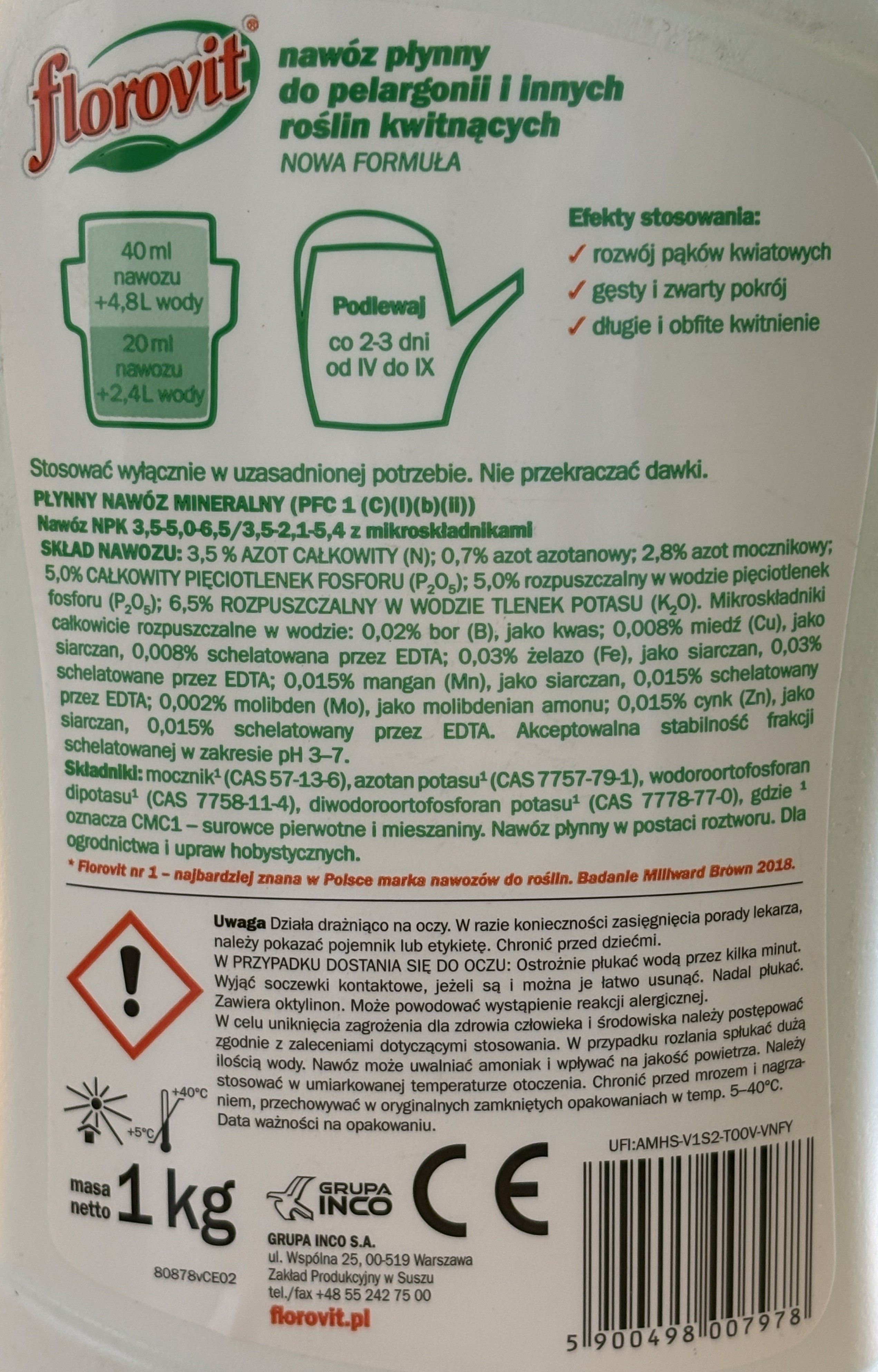 - Typ nawozu: Płynny, skoncentrowany