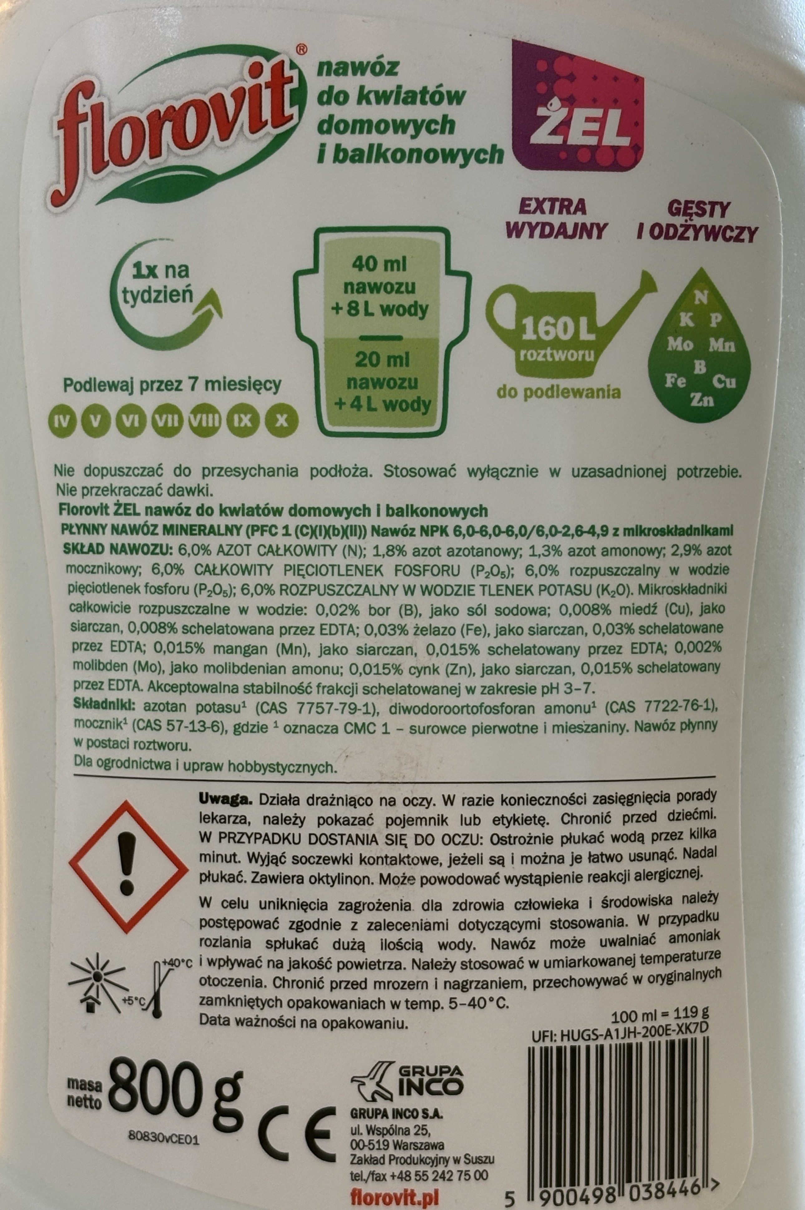FLOROVIT żel do kwiatów domowych i balkonowych 800g - idealny wybór dla Twojego ogrodu i balkonów!