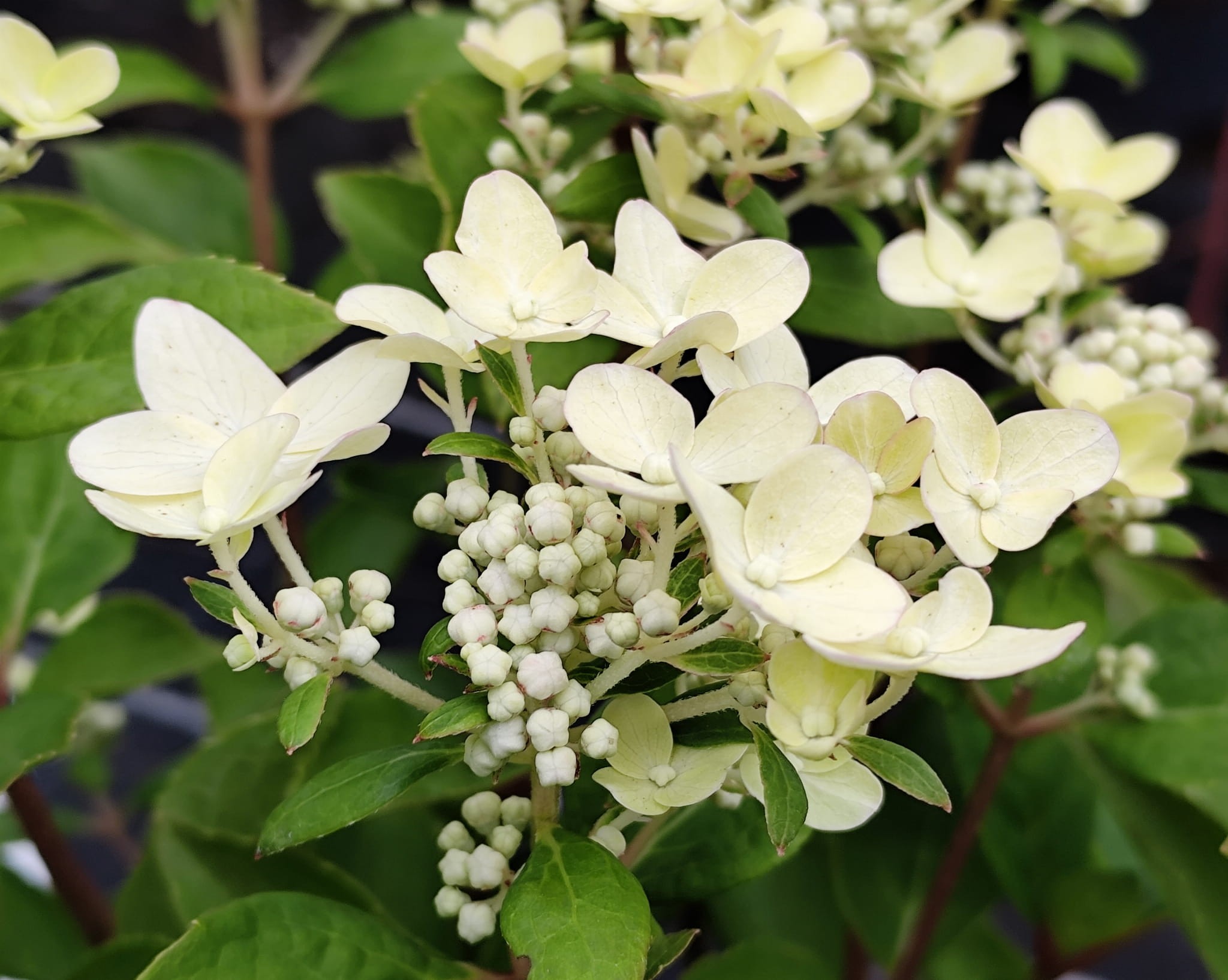 Wyjątkowy, karłowy krzew liściasty, o zaokrąglonym pokroju i powolnym wzroście. Jest jedną z najniższych odmian hortensji, dorasta do 60 cm wysokości, i podobnej szerokości. To prawdziwy klejnot w ogrodzie ze względu na niezwykle obfite i długie kwitnienie! Rozpoczyna się w czerwcu, i trwa aż do września. Kwiaty zebrane w ażurowe baldachy, początkowo kremowo-pistacjowe, białe, z czasem nabierają delikatnych różowych rumieńców. Liście ciemnozielone, nieduże, jesienią fioletowo-purpurowe, opadają na zimę. Kwitnie na jednorocznych pędach, więc nie grożą jej uszkodzenia pąków przez wiosenne przymrozki. Wczesnowiosenne cięcie pobudza wzrost i rozkrzewianie oraz sprzyja tworzeniu większych kwiatów i obfitemu kwitnieniu. Preferuje stanowiska słoneczne i półcieniste. Najlepiej rośnie na glebach żyznych i dostatecznie wilgotnych, może to być gleba uniwersalna ogrodowa, pH 5,5-6,5; dodatkowo można wymieszać ją z perlitem, co spowoduje spulchnienie podłoża oraz lepsze dotlenienie korzeni, a tym samym bujniejszy wzrost. W czasie suszy wymaga podlewania. Nadaje się do sadzenia w pojemnikach na balkonach i tarasach. Doskonale sprawdzi się posadzona w roli solitera! Kwiaty hortensji nadają się na kwiat cięty, a po zasuszeniu można wykorzystać go do suchych bukietów. Rośliny uprawiane w donicach sadzimy w ogrodach przez cały sezon wegetacyjny, tj. od wczesnej wiosny, poprzez lato, aż do późnej jesieni.