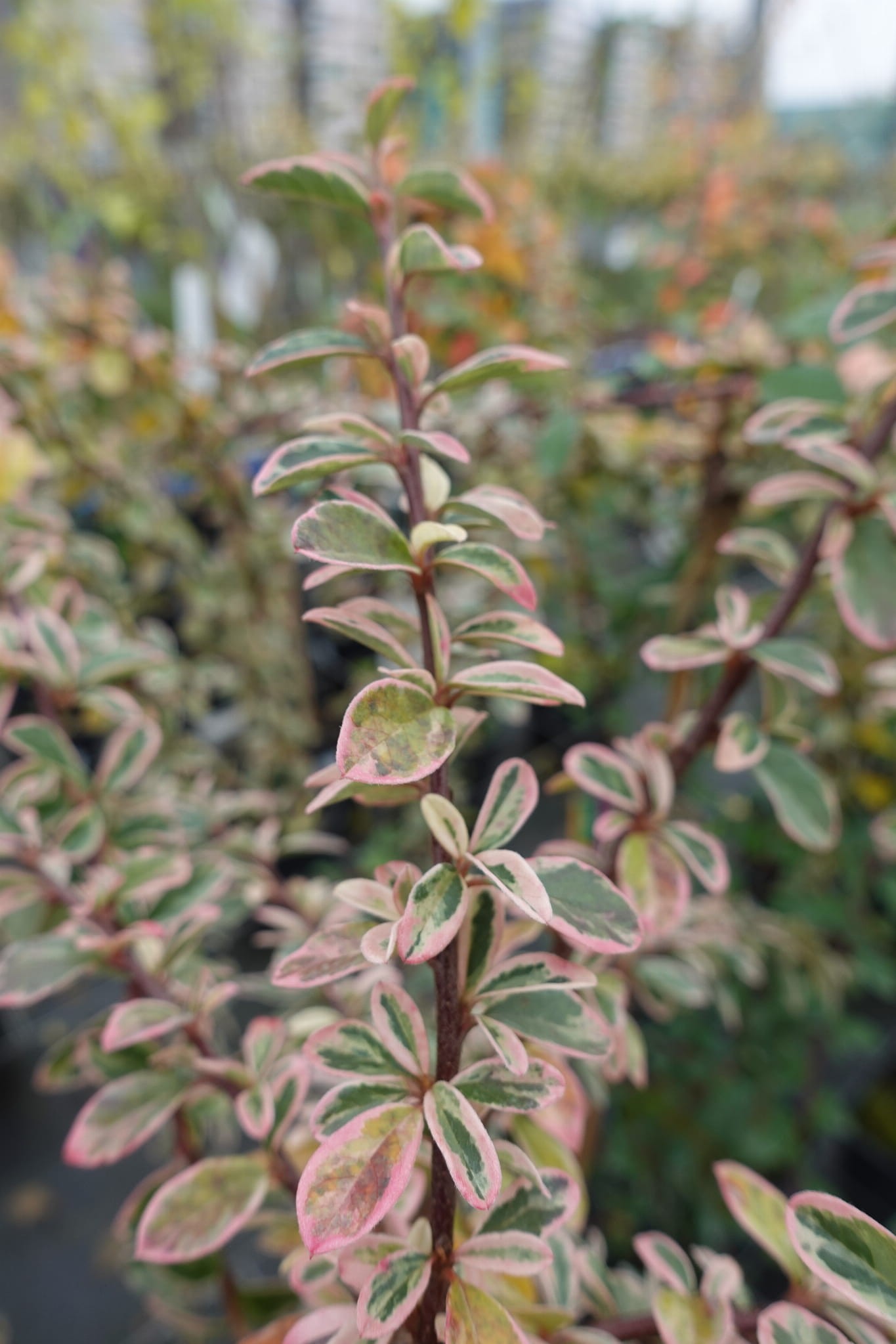Efektowny krzew, który wyróżnia się nietypową urodą. Pędy wygięte, które w formie zaszczepionej na pniu przyjmują malowniczy, płaczący pokrój. Łatwo zakorzeniają się w ziemi, gęsto ją pokrywając. Po 10 latach korona osiąga 0,8 m szerokości, wysokość zależna jest od miejsca szczepienia. Liście zimozielone, nie opadają na zimę, błyszczące, gęsto okrywają pędy. Zachwycają wyjątkowymi kolorami. Są one ciemnozielone, młode liście mają białe obrzeżenie, starsze czerwienieją, od spodu niebieskozielone. Kwitnie od maja do czerwca, wówczas pokrywa się morzem drobnych, białych kwiatów. Roślina miododajna. We wrześniu dojrzewają kuliste, pomarańczowoczerwone owoce, które wyglądają niesamowicie na tle kolorowych liści. Owoce utrzymują się na krzewach do wiosny i są chętnie zjadane przez ptaki. Nie jest wymagająca, toleruje stanowiska od słonecznego do półcienistego i zasobne, przepuszczalne gleby, może to być uniwersalna ziemia ogrodowa o pH 5,5-6,5, dodatkowo można wymieszać ją z perlitem lub keramzytem, co spowoduje spulchnienie podłoża oraz lepsze dotlenienie korzeni, a tym samym bujniejszy wzrost. Polecana do ogrodów przydomowych, na rabaty, skalniaki, a także do zieleni miejskiej, do parków. Świetnie sprawdzi się, jako roślina okrywowa. Można ją również uprawiać w pojemnikach, które będą zdobić balkony lub tarasy. Rośliny uprawiane w donicach sadzimy w ogrodach przez cały sezon wegetacyjny, tj. od wczesnej wiosny, poprzez lato, aż do późnej jesieni.