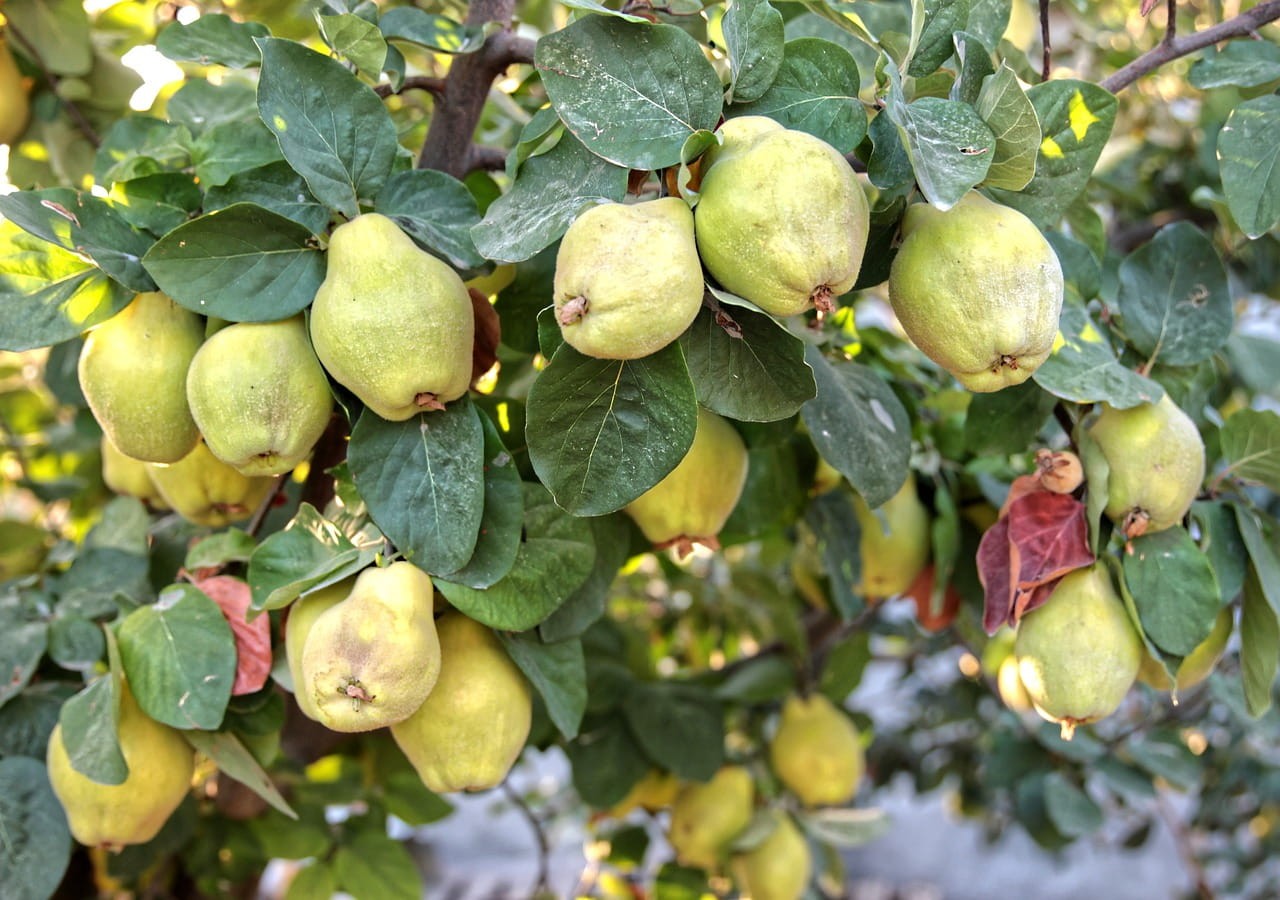 - Owoce: żółte, w kształcie gruszki, twarde, cierpkie, aromatyczne