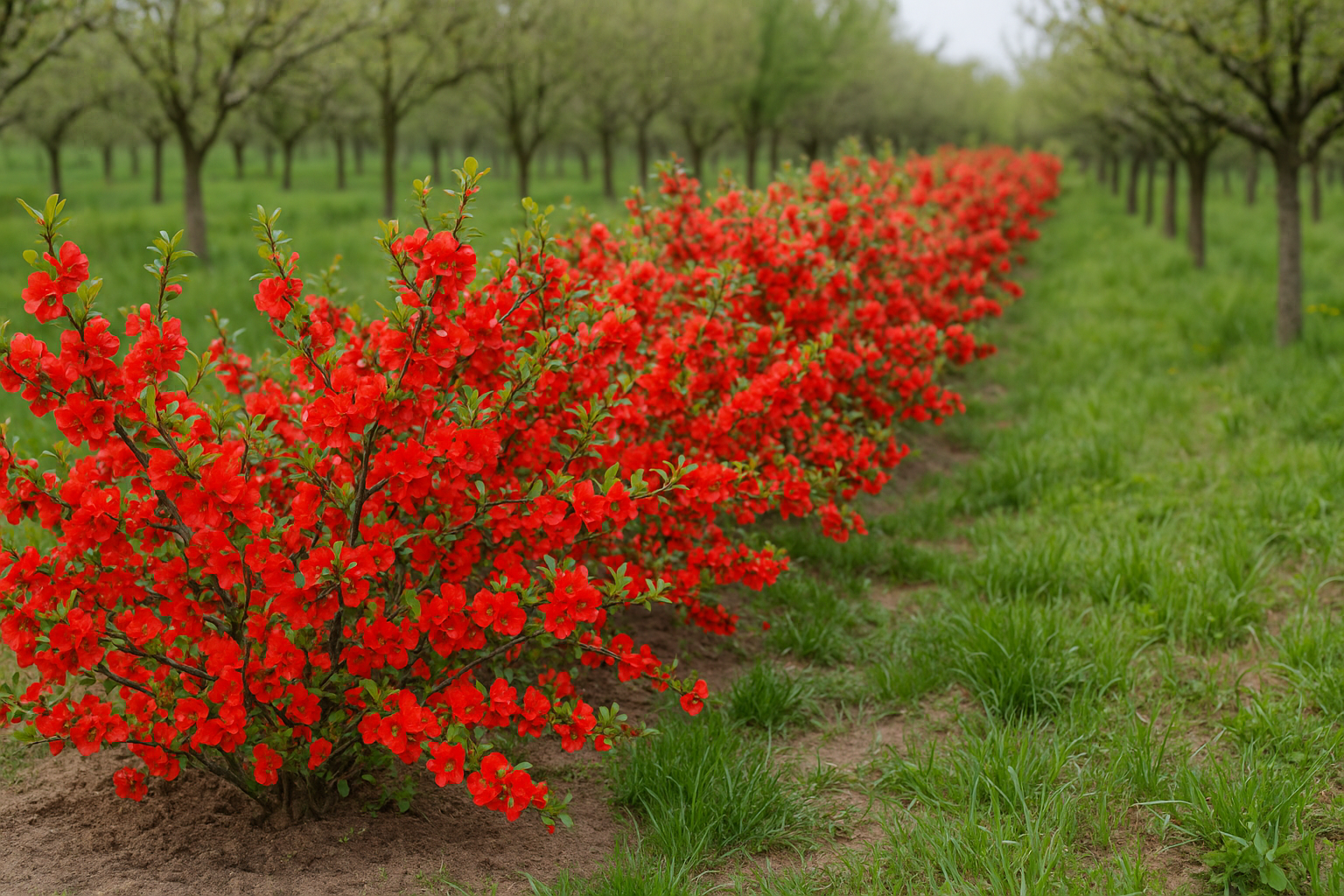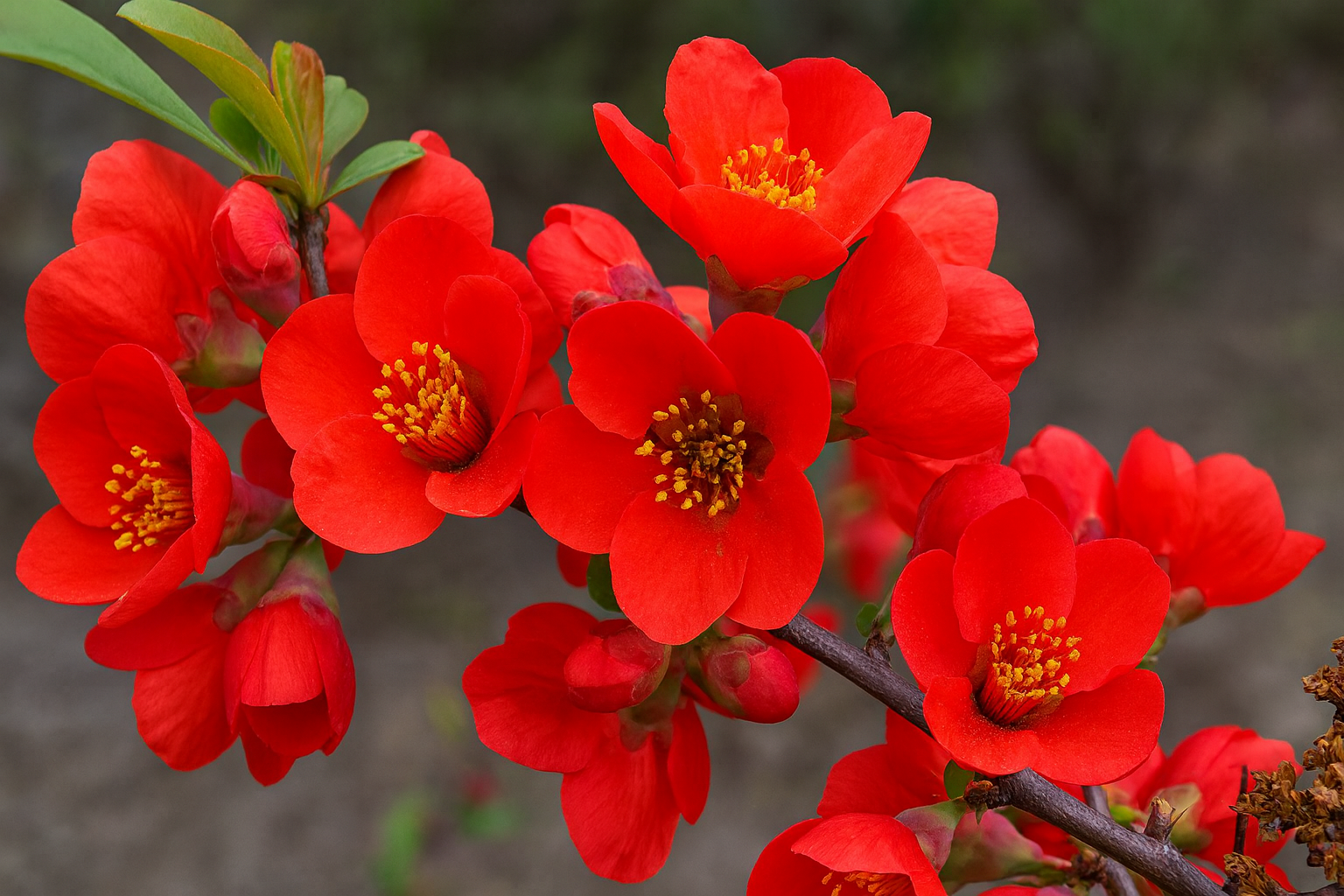 Czerwony ogień wiosny z owocowym finałem! Dorasta do 1 m wysokości tworząc gęsty, szeroko rozłożysty krzew z mocnymi, kolczastymi pędami. Jego ciemnozielone, błyszczące liście pięknie podkreślają intensywną barwę kwiatów i nadają roślinie elegancki wygląd przez cały sezon. Wczesną wiosną gałęzie niemal znikają pod masą dużych, głęboko czerwonych kwiatów – pojedynczych i półpełnych – które tworzą spektakularne, energetyczne widowisko. Często potrafi powtórzyć kwitnienie latem, dzięki czemu kolor wraca jak miła niespodzianka. Jesienią pojawiają się jadalne, twarde i niezwykle aromatyczne owoce, dojrzewające do intensywnie żółtej barwy. Idealne na konfitury, syropy, nalewki czy jako pachnący dodatek do herbaty zamiast cytryny – bogate w witaminę C i naturalne kwasy owocowe. Odmiana mało wymagająca i odporna na suszę. Preferuje stanowisko słoneczne, gleby żyzne, przepuszczalne, przeciętne ogrodowe o odczynie lekko kwaśnym, może to być ziemia do drzewek i krzewów owocowych o pH 5,5-6,5; dodatkowo warto wymieszać ją z perlitem lub keramzytem, co spowoduje lepsze dotlenienie korzeni, a tym samym bujniejszy wzrost. Świetnie znosi cięcie, doskonała do sadzenia pojedynczo i w grupach, na rabatach, w ogrodach skalnych, zieleni miejskiej oraz w dużych pojemnikach na tarasach i balkonach. To krzew, który łączy spektakularne kwitnienie z praktycznym plonem i daje maksimum efektu przy minimalnej pielęgnacji. Rośliny uprawiane w donicach sadzimy w ogrodach przez cały sezon wegetacyjny, tj. od wczesnej wiosny, poprzez lato, aż do późnej jesieni.
