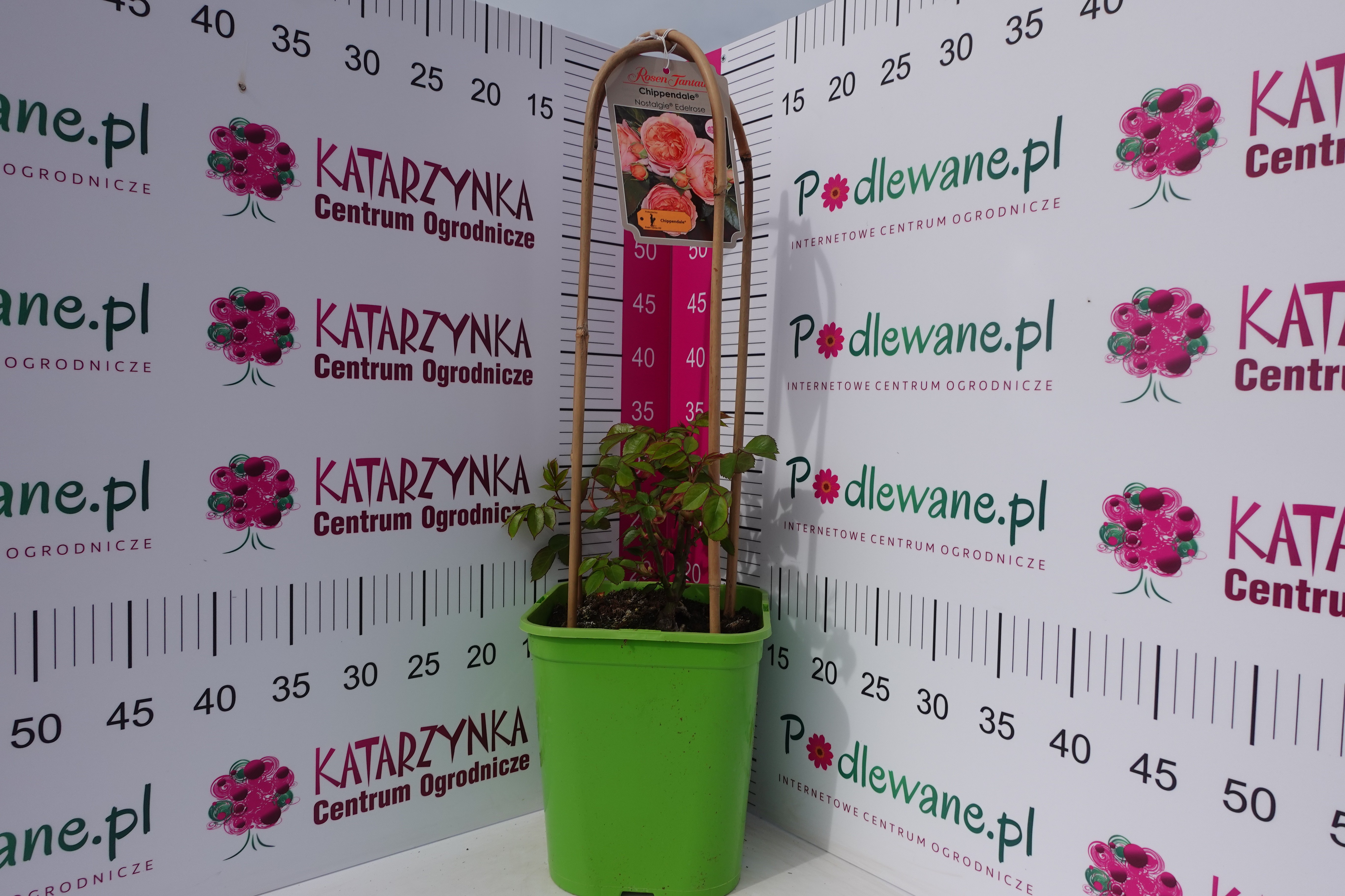 Róża nostalgiczna 'Chippendale'® to prawdziwa gwiazda ogrodu – zachwyca pełnymi, miseczkowatymi kwiatami i słodkim, intensywnym zapachem. Dorasta do 1 m wysokości, tworząc kompaktowy, wyprostowany pokrój, idealny do ogrodów, balkonów i tarasów. Jej błyszczące, ciemnozielone liście pięknie podkreślają obfite kwitnienie od czerwca do października. Kwiaty są duże, trwałe, odporne na deszcz i trudne warunki, a ich ciepłe pomarańczowe odcienie rozświetlają przestrzeń i przyciągają wzrok. Róża jest niezwykle odporna na choroby grzybowe i upały, dzięki czemu nie wymaga skomplikowanej pielęgnacji. Preferuje stanowiska słoneczne, gleby żyzne, przepuszczalne, umiarkowanie wilgotne o odczynie lekko kwaśnym, może to podłoże do róż o pH 5,5-6,5; najlepiej dodatkowo wymieszać je z perlitem, co spowoduje lepsze dotlenienie korzeni, a tym samym bujniejszy wzrost. Regularne podlewanie, nawożenie w okresie wegetacyjnym oraz coroczne cięcie pozwolą na zdrowy rozwój rośliny i obfite kwitnienie. W chłodniejszych rejonach zaleca się lekkie okrycie podstawy krzewu na zimę. Doskonale komponuje się w rabatach, w pojemnikach na balkonach i tarasach, zarówno w pojedynkę, jak i w grupach, tworząc zachwycające, aromatyczne kompozycje. Gęstość sadzenia 4-5 szt/m2. Rośliny uprawiane w donicach sadzimy w ogrodach przez cały sezon wegetacyjny, tj. od wczesnej wiosny, poprzez lato, aż do późnej jesieni.