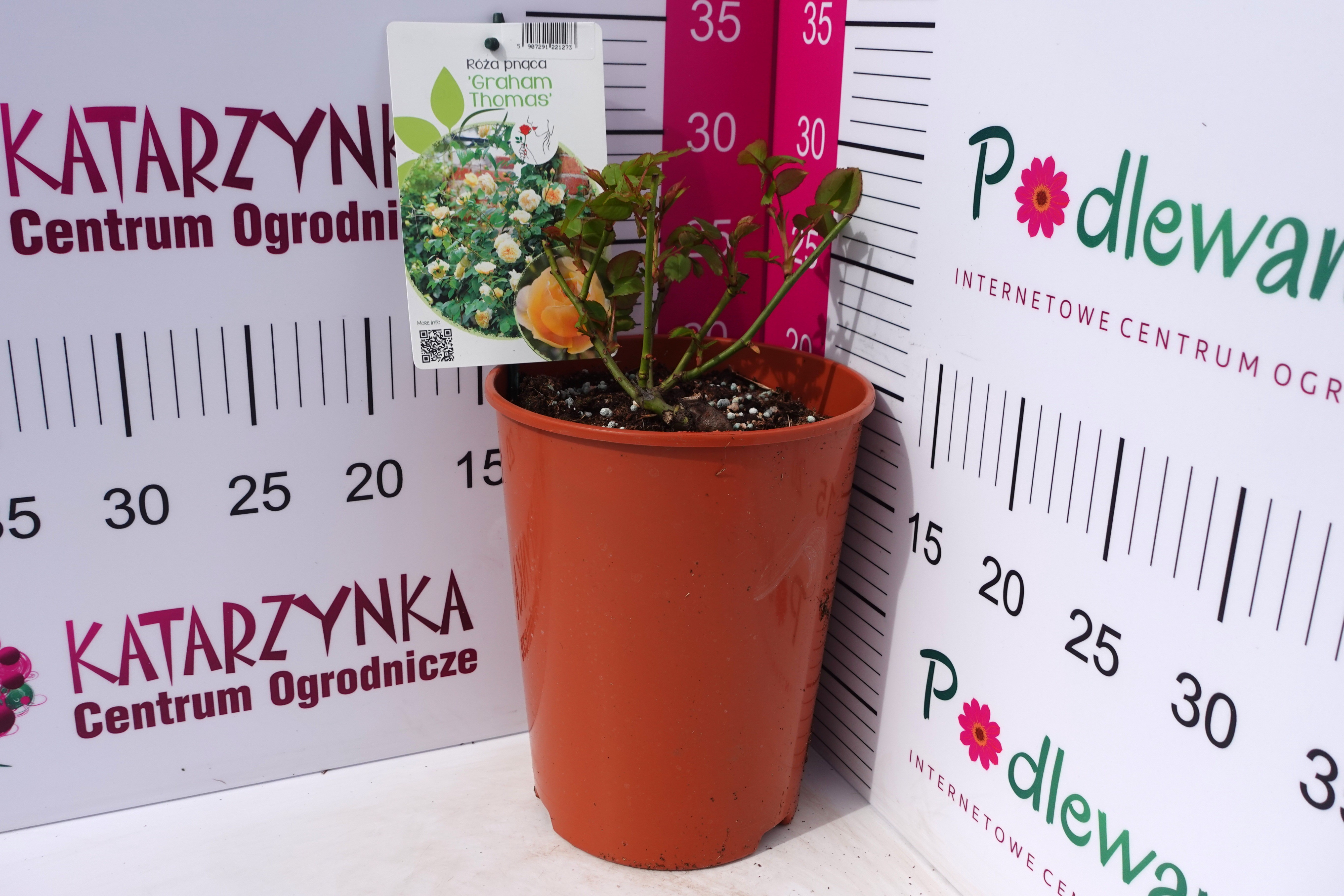 Róża pnąca ‘Graham Thomas’ to prawdziwa ikona elegancji, która wnosi do ogrodu ciepło słonecznych, złocistych kwiatów i ponadczasowy urok. Ta wyjątkowa odmiana zachwyca bujnym, silnym wzrostem i gęstym pokrojem, dorastając do 3,5 m wysokości i tworząc efektowne, kwitnące formy idealne na pergole, altany i ogrodzenia. Mocne, elastyczne pędy łatwo się prowadzą, a ciemnozielone, błyszczące liście stanowią doskonałe tło dla dużych, pełnych kwiatów w herbaciano-żółtym odcieniu, przypominających kształtem piwonie. Kwitnie długo i bardzo obficie od czerwca aż do października, wypełniając ogród intensywnym, przyjemnym zapachem. Kwiaty są trwałe, odporne na deszcz i piękne również po ścięciu. Najlepiej rośnie na stanowiskach słonecznych, w żyznej i przepuszczalnej glebie o lekko kwaśnym odczynie, może to być podłoże do róż o pH 5,5-6,5; najlepiej dodatkowo wymieszać je z perlitem, co spowoduje lepsze dotlenienie korzeni, a tym samym bujniejszy wzrost. Regularne podlewanie i nawożenie w sezonie wegetacyjnym sprzyja intensywnemu kwitnieniu. W chłodniejszych rejonach zaleca się lekkie okrycie podstawy krzewu na zimę. To odmiana ceniona za urodę, długowieczność i niezawodność – idealna dla tych, którzy marzą o ogrodzie pełnym klasy, światła i romantycznego klimatu. Rośliny uprawiane w donicach sadzimy w ogrodach przez cały sezon wegetacyjny, tj. od wczesnej wiosny, poprzez lato, aż do późnej jesieni.