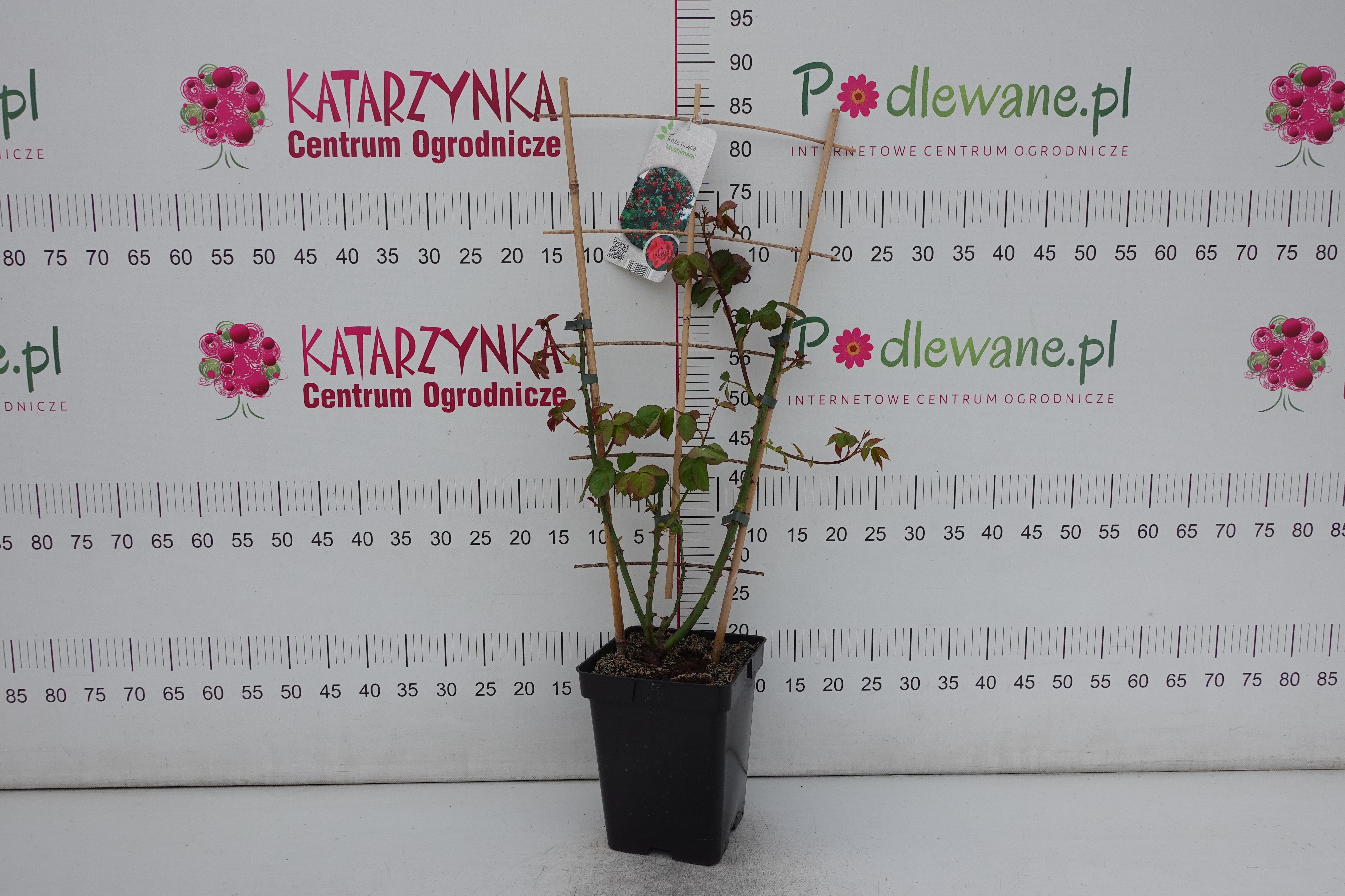 Róża pnąca 'Mushimara' to prawdziwa królowa czerwieni, która zamienia każdy ogród w romantyczną oazę! Dorasta do 3,5 m wysokości, tworząc rozłożyste, majestatyczne formy pnące – idealne na pergole, ogrodzenia czy altany. Jej grube, mocne i elastyczne pędy pięknie wspinają się w górę, oplatając przestrzeń zielenią i aksamitnym tłem ciemnozielonych, błyszczących liści. Od czerwca aż do października zachwyca powtarzającym się, obfitym kwitnieniem dużych, pełnych, głęboko czerwonych kwiatów o delikatnie pofalowanych płatkach, które układają się w klasyczne, szlachetne formy. Kwiaty są trwałe, odporne na deszcz, a ich subtelny, przyjemny zapach roznosi się po całym ogrodzie, dodając mu niepowtarzalnego uroku i romantyzmu. Preferuje stanowiska słoneczne, gleby żyzne, przepuszczalne, umiarkowanie wilgotne o odczynie lekko kwaśnym, może to być podłoże do róż o pH 5,5-6,5; najlepiej dodatkowo wymieszać je z perlitem, co spowoduje lepsze dotlenienie korzeni, a tym samym bujniejszy wzrost. Regularne podlewanie i nawożenie w sezonie wegetacyjnym sprzyja intensywnemu kwitnieniu. 'Mushimara' to róża dla miłośników elegancji, intensywnych barw i wyjątkowego charakteru – absolutnie efektowna, trwała i nieodparcie urokliwa w każdej aranżacji ogrodowej. Rośliny uprawiane w donicach sadzimy w ogrodach przez cały sezon wegetacyjny, tj. od wczesnej wiosny, poprzez lato, aż do późnej jesieni.