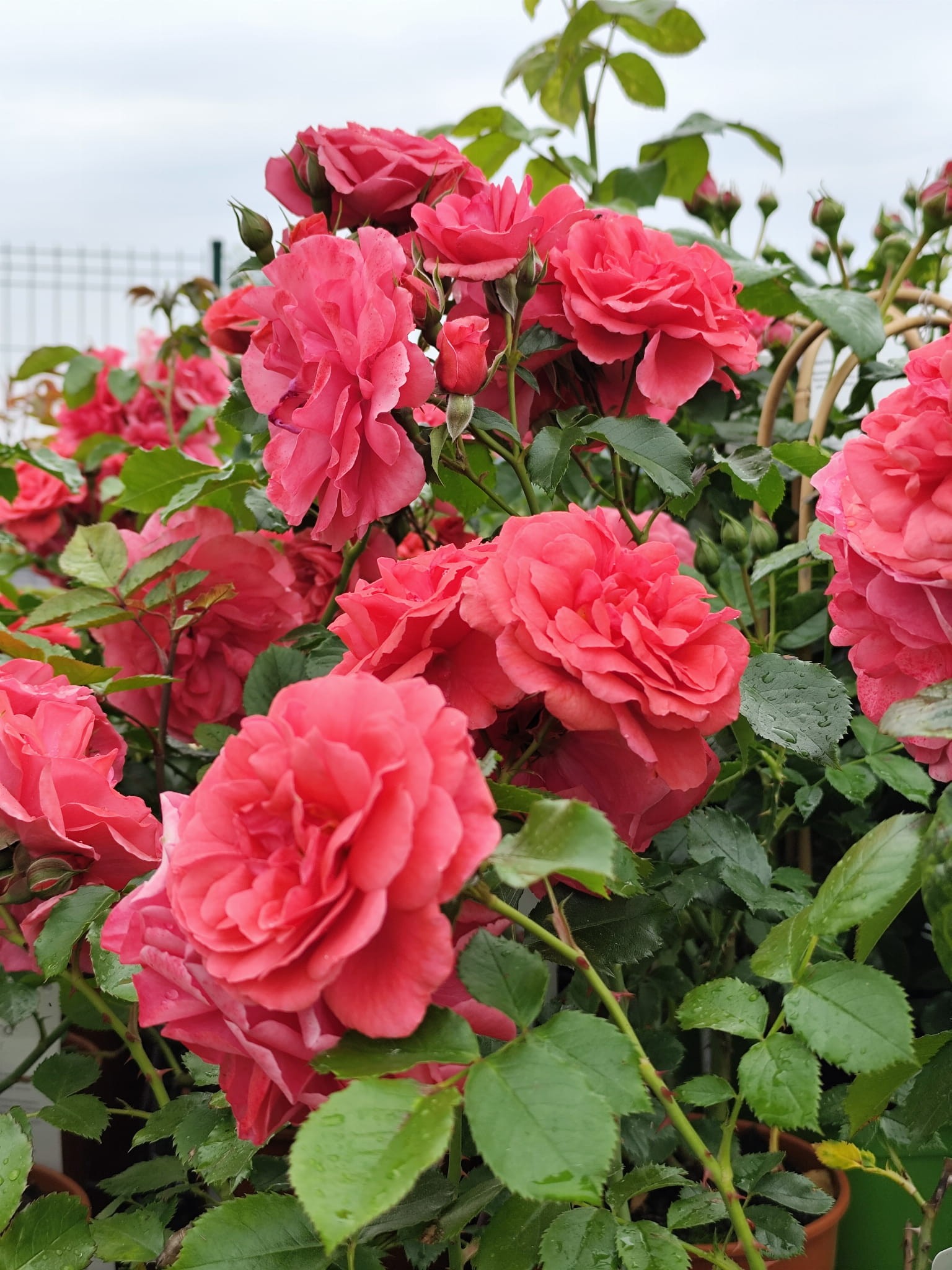 Róża pnąca 'Rosarium' to prawdziwa gwiazda ogrodu, która zachwyca ogromnymi kwiatami i niezwykle obfitym kwitnieniem. Ta ceniona odmiana rośnie silnie, gęsto się rozgałęzia i dorasta do 3,5 m wysokości, tworząc spektakularne ściany kwiatów idealne na pergole, altany i ogrodzenia. Grube, elastyczne pędy łatwo się prowadzą, a ciemnozielone, błyszczące liście pięknie podkreślają wielkie, pełne kwiaty o średnicy nawet 11 cm. Kwitnie falami od czerwca aż do października – początkowo intensywnie różowe kwiaty z czasem delikatnie jaśnieją, nadając krzewowi romantyczny, bajkowy wygląd. Kwiaty są trwałe, odporne na deszcz i doskonałe również do cięcia. Preferuje stanowiska słoneczne, gleby żyzne, przepuszczalne, umiarkowanie wilgotne o odczynie lekko kwaśnym, może to być podłoże do róż o pH 5,5-6,5; najlepiej dodatkowo wymieszać je z perlitem, co spowoduje lepsze dotlenienie korzeni, a tym samym bujniejszy wzrost. Regularne podlewanie, nawożenie w okresie wegetacyjnym oraz coroczne cięcie pozwolą na zdrowy rozwój rośliny i obfite kwitnienie. Odmiana jest odporna na choroby i mrozy, a przy lekkim okryciu dobrze zimuje nawet w chłodniejszych rejonach. ‘Rosarium’ to idealny wybór dla tych, którzy marzą o romantycznym ogrodzie pełnym kwiatów, elegancji i prawdziwego efektu „muszę ją mieć”. Rośliny uprawiane w donicach sadzimy w ogrodach przez cały sezon wegetacyjny, tj. od wczesnej wiosny, poprzez lato, aż do późnej jesieni.