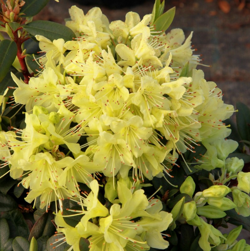 Cudowna wiosenna księżniczka, która wprowadza do ogrodu słoneczny blask i radość! Różanecznik 'Princess Anne' to niski, zimozielony krzew o zwartym, gęsto rozgałęzionym i lekko spłaszczonym pokroju. Po 10 latach osiąga 30 cm wysokości i 60 cm szerokości, tworząc idealną, dekoracyjną poduszkę. Małe, jasnozielone, matowe liście pozostają atrakcyjne przez cały rok, dodając świeżości i uroku każdemu zakątkowi. Największą atrakcją są kwiaty – jasnożółte, delikatne jak wiosenny promień słońca, z subtelnym zielono-żółtym rysunkiem i ozdobnymi pręcikami. Pojawiają się już pod koniec kwietnia, obsypując krzew obficie i zamieniając go w słodki, wiosenny klejnot pełen energii i świeżości. Najlepiej rośnie w półcieniu lub cieniu, w miejscach zacisznych i osłoniętych od zimowych wiatrów. Preferuje gleby kwaśne, próchniczne i umiarkowanie wilgotne – idealna będzie ziemia do roślin kwaśnolubnych o pH 3,5–4,5; dodatkowo warto wymieszać ją z perlitem lub keramzytem, co spowoduje lepsze dotlenienie korzeni a tym samym bujniejszy wzrost. Doskonale odnajduje się w ogrodach przydomowych i japońskich, na wrzosowiskach oraz w kompozycjach z karłowymi azaliami, różanecznikami i wrzoścami, wnosząc lekkość, świeżość i czystą, cukierkową radość wiosny. Rośliny uprawiane w donicach sadzimy w ogrodach przez cały sezon wegetacyjny, tj. od wczesnej wiosny, poprzez lato, aż do późnej jesieni.