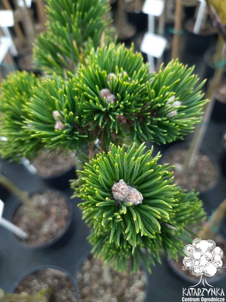 Mała, zielona artystka wśród iglaków! 'Jakobsen' zachwyca krzaczastym pokrojem, przypominającym formowany bonsai – subtelna, urokliwa i pełna charakteru. Po 10 latach korona osiąga 0,5 m szerokości, a wysokość zależy od miejsca szczepienia. Gęste, krótkie pędy i ciemnozielone, podwójne igły kontrastujące z jasnymi pączkami tworzą żywą rzeźbę, która zmienia się wraz z upływem czasu, wprowadzając do przestrzeni spokój, harmonię i magiczny nastrój. Odmiana odporna na mróz, suszę i trudniejsze warunki. Preferuje stanowiska słoneczne. Nie ma specjalnych wymagań glebowych, jest rośliną tolerancyjną, jednak najlepiej rośnie na przeciętnej glebie ogrodowej o kwaśnym odczynie, może to być podłoże pod iglaki o pH 4,0-5,0; dodatkowo warto wymieszać je z perlitem lub keramzytem, co spowoduje lepsze dotlenienie korzeni, a tym samym bujniejszy wzrost. Zaszczepiona na pniu prezentuje się jak miniaturowe drzewko – idealny akcent na wrzosowiskach, skalniakach, rabatach i w pojemnikach na balkonach i tarasach. Rośliny uprawiane w donicach sadzimy w ogrodach przez cały sezon wegetacyjny, tj. od wczesnej wiosny, poprzez lato, aż do późnej jesieni.