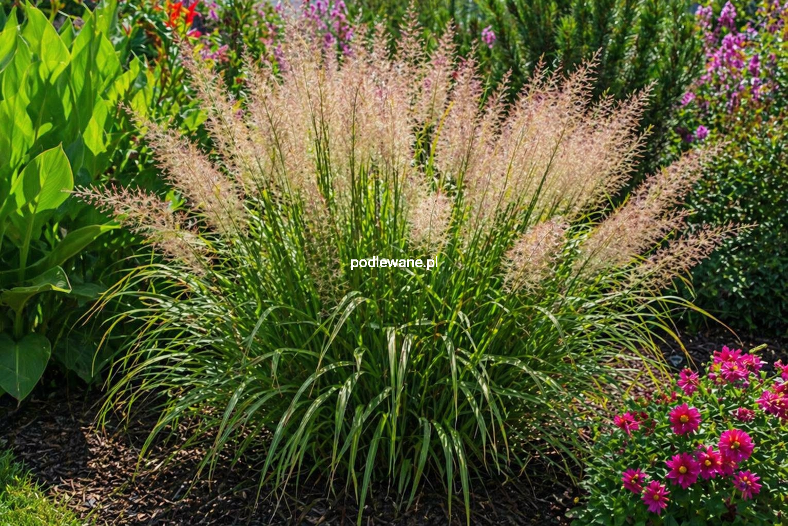 Delikatna dama wśród traw ozdobnych! Tworzy okazałe, zwiewne kępy jasnozielonych, błyszczących liści, dorastając do 150 cm wysokości i 50 cm szerokości. Od sierpnia do września jej źdźbła przyozdabiają się puszystymi, wrzecionowatymi wiechami. Początkowo purpurowo-czerwone, z czasem zmieniają się w srebrzysto-szare, a na końcu w ciepłe beżowe odcienie, utrzymując swój urok aż do zimy. Roślina wprowadza do ogrodu lekkość i ruch – przy najdelikatniejszym wietrze wiechy falują niczym miękkie pióra. Co kilka lat warto podzielić starsze kępy – wówczas rośliny odżywają i bujnie rozrastają się na nowe miejsca. Preferuje stanowiska słoneczne, gleby żyzne, przepuszczalne, przeciętne ogrodowe o odczynie lekko kwaśnym, może to być ziemia do traw ozdobnych o pH 5,2-6,8; najlepiej dodatkowo wymieszać ją z perlitem, co spowoduje lepsze dotlenienie korzeni, a tym samym bujniejszy wzrost. Doskonale prezentuje się w ogrodach japońskich, naturalistycznych, przy oczkach wodnych, w grupach z bylinami oraz w pojemnikach na balkonach i tarasach. Rośliny uprawiane w donicach sadzimy w ogrodach przez cały sezon wegetacyjny, tj. od wczesnej wiosny, poprzez lato, aż do późnej jesieni.